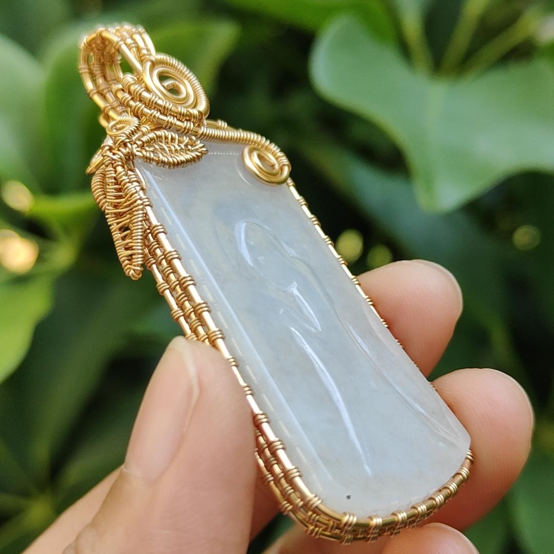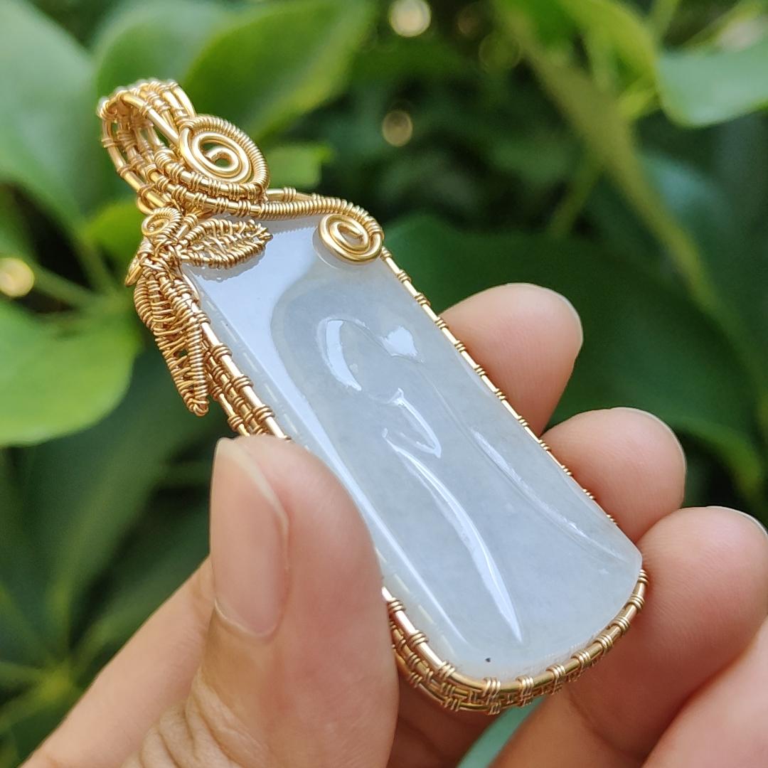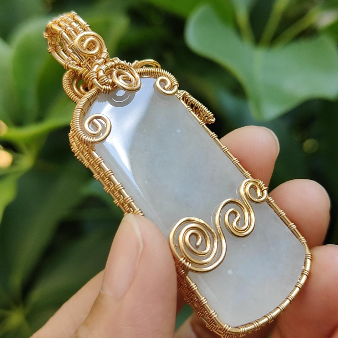 #Terjual - Kerajinan DIY dengan Pencerahan, Liontin GF14k yang dibungkus tangan pada batu giok Jadeite tipe A alami dengan sertifikat, berat 19,33 gram ~ Buatan Singapura (pendant311)