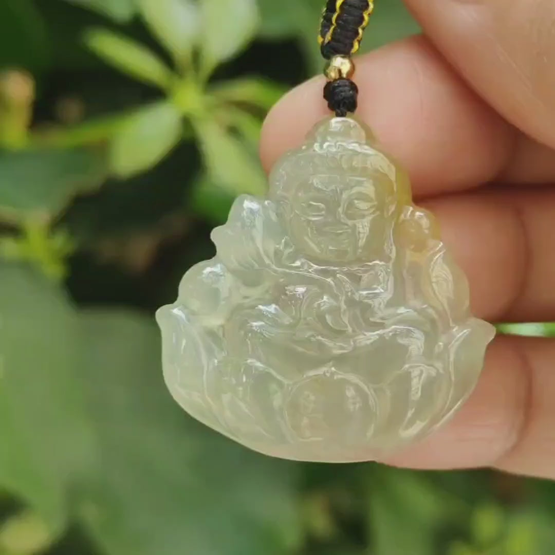 Liontin Buddha Bayi Transparan Kuning Es Sertifikat Giok Jadeite Tipe A Alami berat 5,74 gram, ukuran 30,2 * 29,1 * 4,8 mm (liontin388)