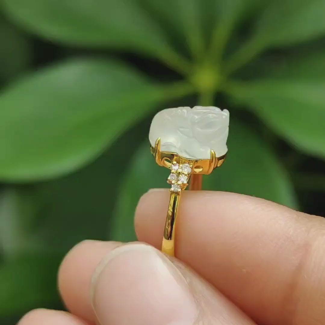 Keahlian yang sangat teliti dipadukan dengan batu giok alam yang menakjubkan membuat cincin ini menjadi tambahan yang luar biasa untuk koleksi perhiasan apa pun.
