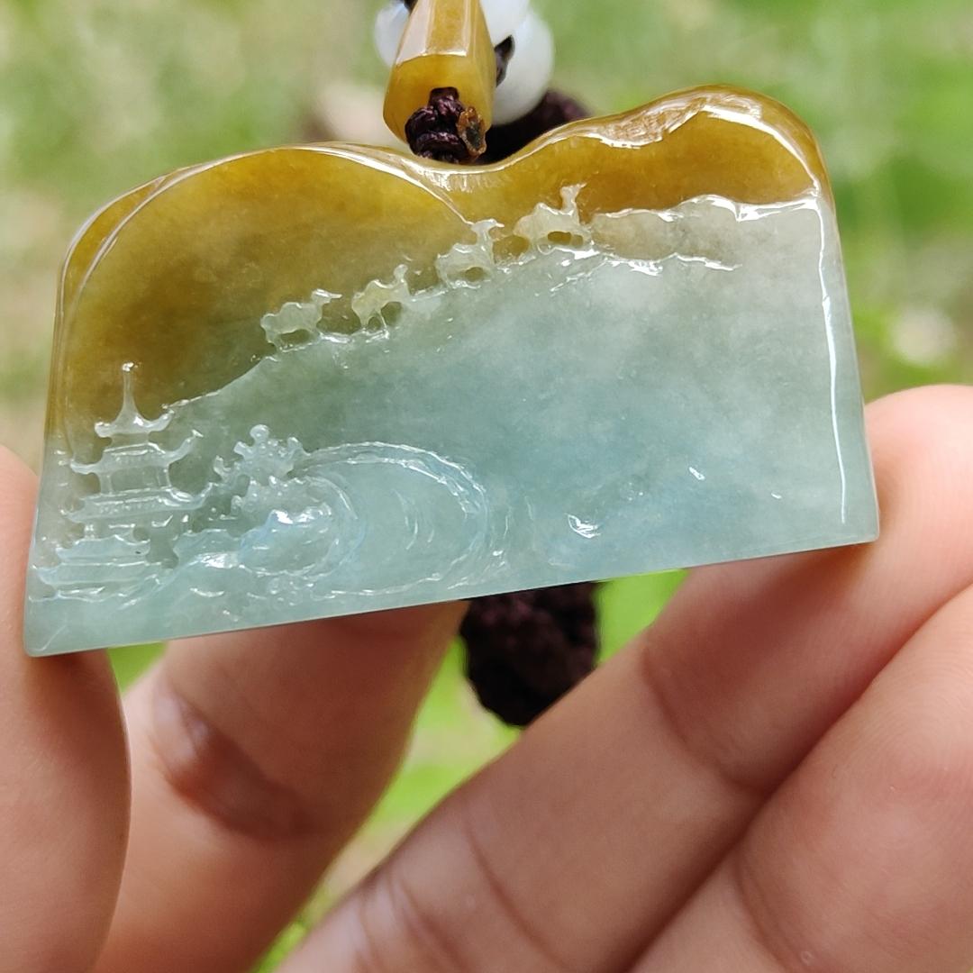 Dapatkan pengalaman unik dengan Liontin Gua Mogao Buatan Langka yang Unik ini yang terbuat dari Giok Jadeite Alami Tipe A. Liontin indah ini memamerkan keahlian yang rumit dan desain unik yang terinspirasi oleh Gua Mogao.