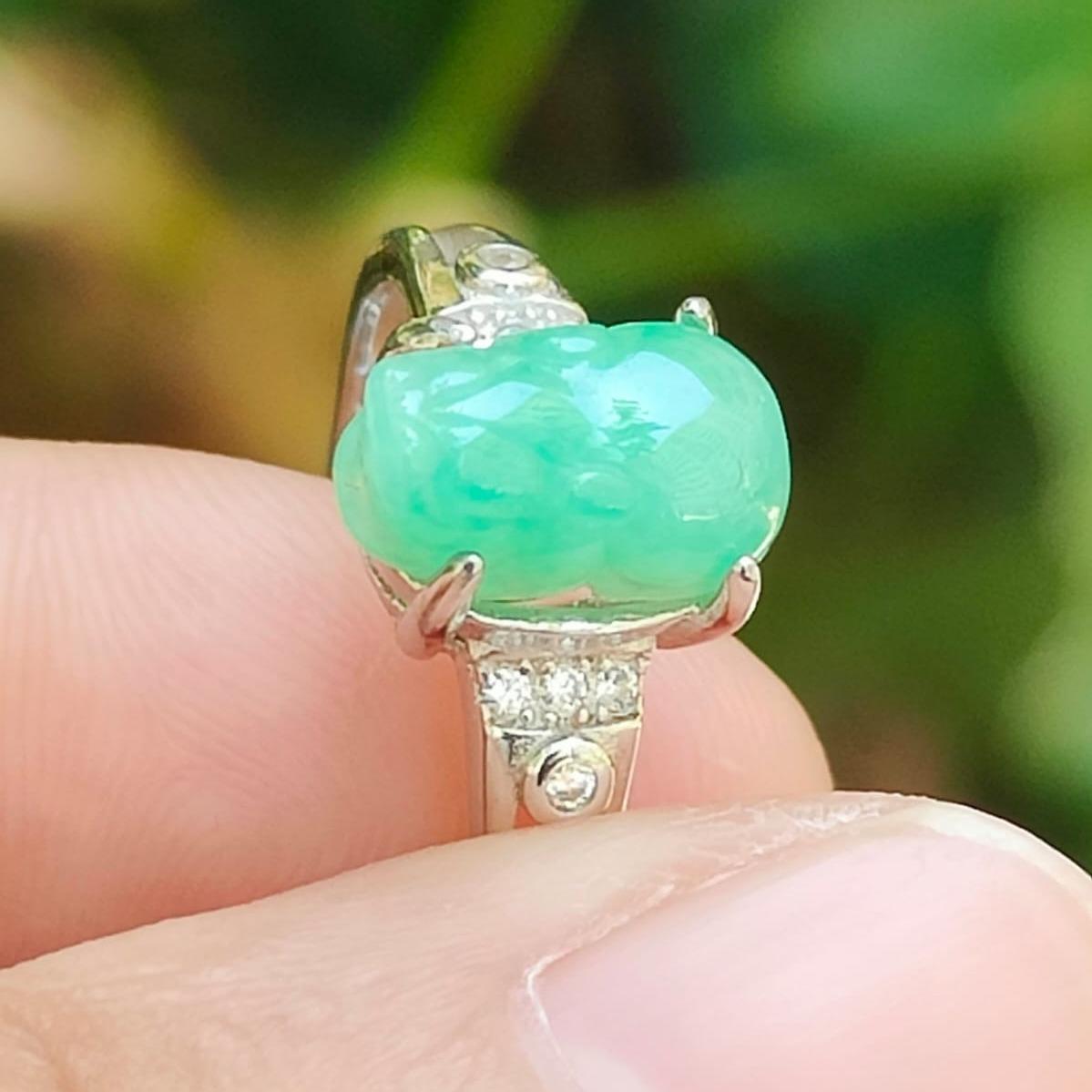 Wood Energy Pixiu Ring 🌱 - Natural Type A Jadeite Pixiu Ring - Certified Adjustable Wealth Charm