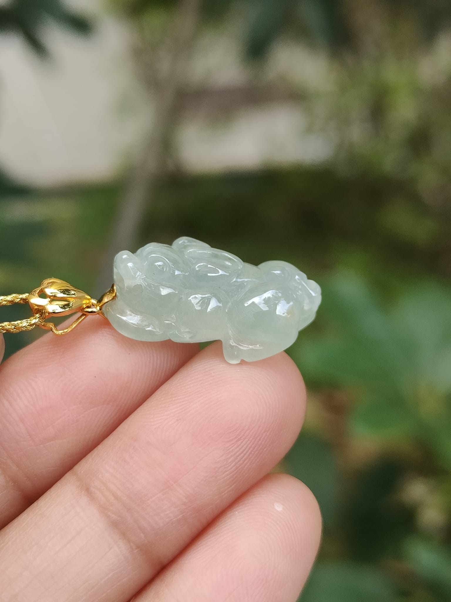 Discover the exquisite beauty of our Pixiu Pendant, crafted from Semi Icy Natural Type A Jadeite Jade.