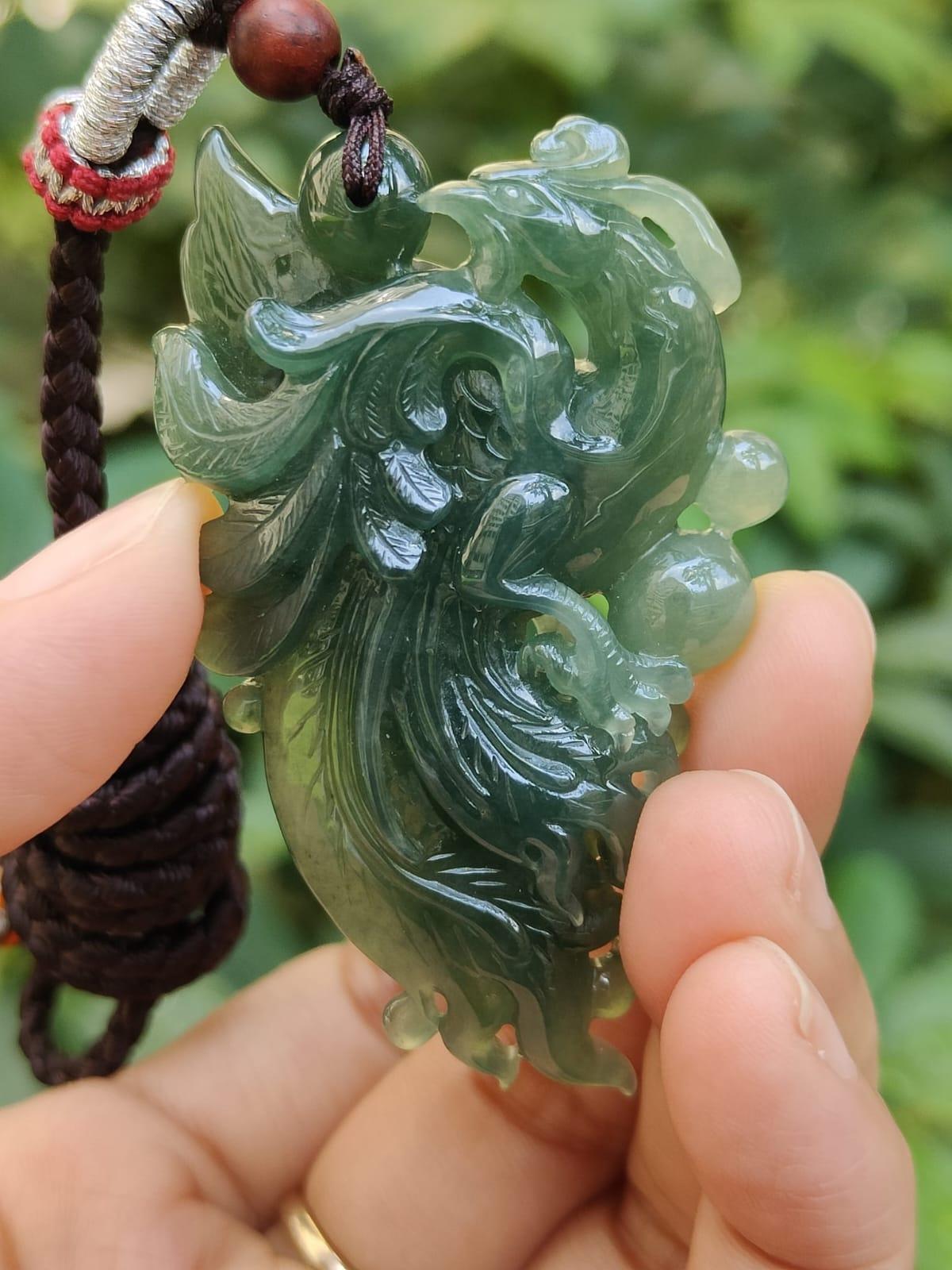 Introducing our new arrival: a Green High Quality Natural Type A Jadeite Jade pendant crafted in the shape of a Phoenix.