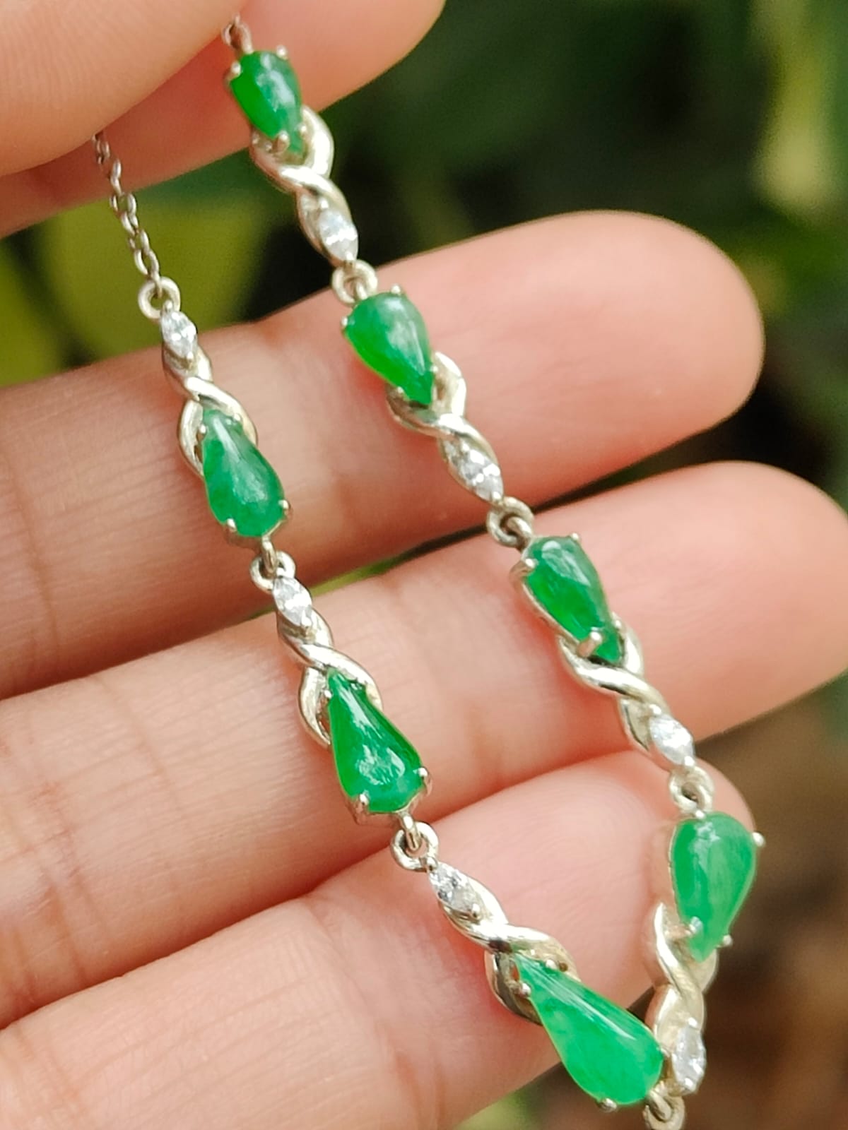 Earth Element Jade Bracelet - 7 Growth-Symbol Waterdrop Cabochons (Sku: s925b7)