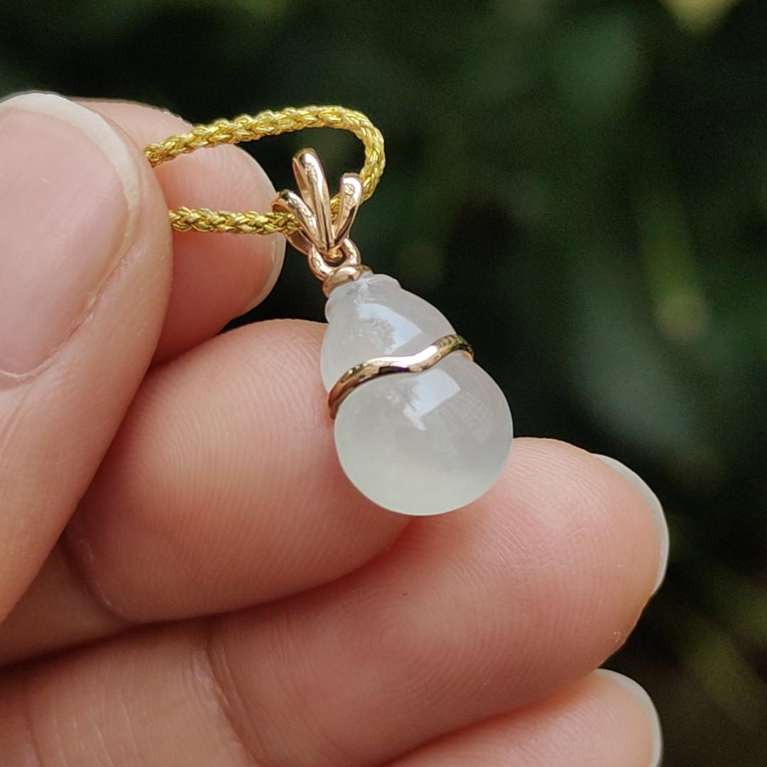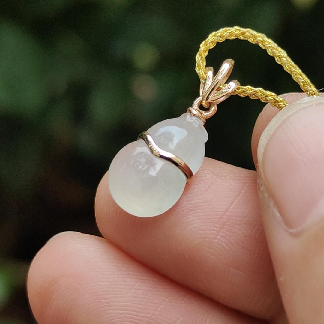 This High Quality SG New Arrival pendant features a small Gourd design crafted on Natural Type A Jadeite Jade, set with 18k gold for a touch of elegance.