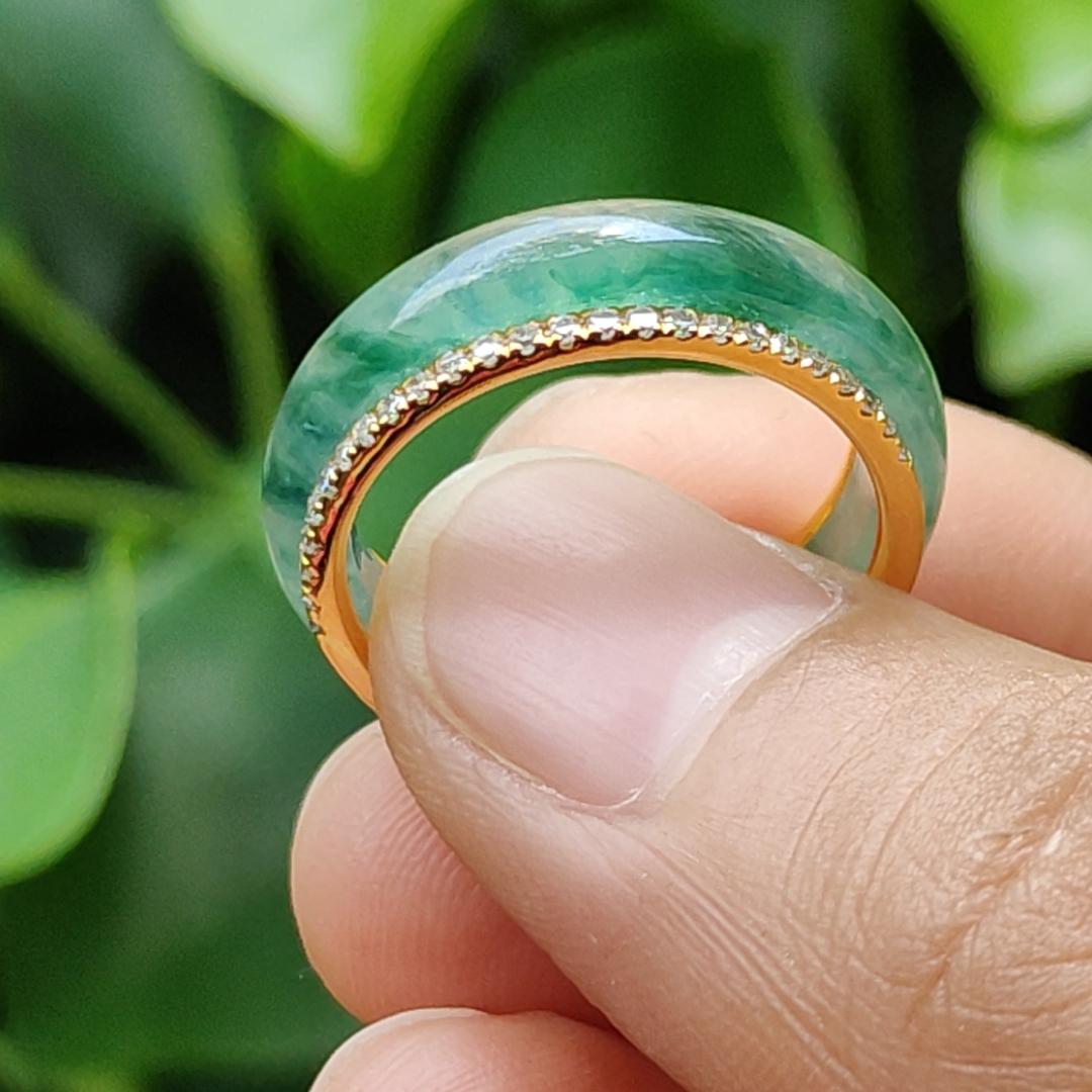 This Icy Translucent Green Floating Patches Natural Type A Jadeite Jade ring is a stunning piece of jewelry accessory.
