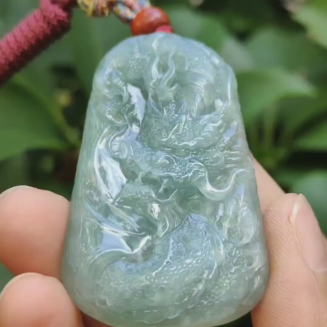 Introducing our Latest Arrival - a stunning Dragon Pendant crafted on Natural Type A Jadeite Jade, complete with a certificate. This exquisite piece weighs 28.8 grams and measures 56.1 * 33.6 * 7.8 mm (pendant358).