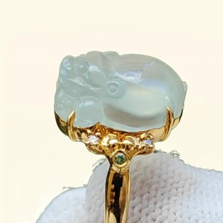 Experience the elegance and auspicious symbolism of this Premium Icy Natural Type A Jadeite Jade ring, featuring a Three Legs Toad design crafted on 18k Gold.