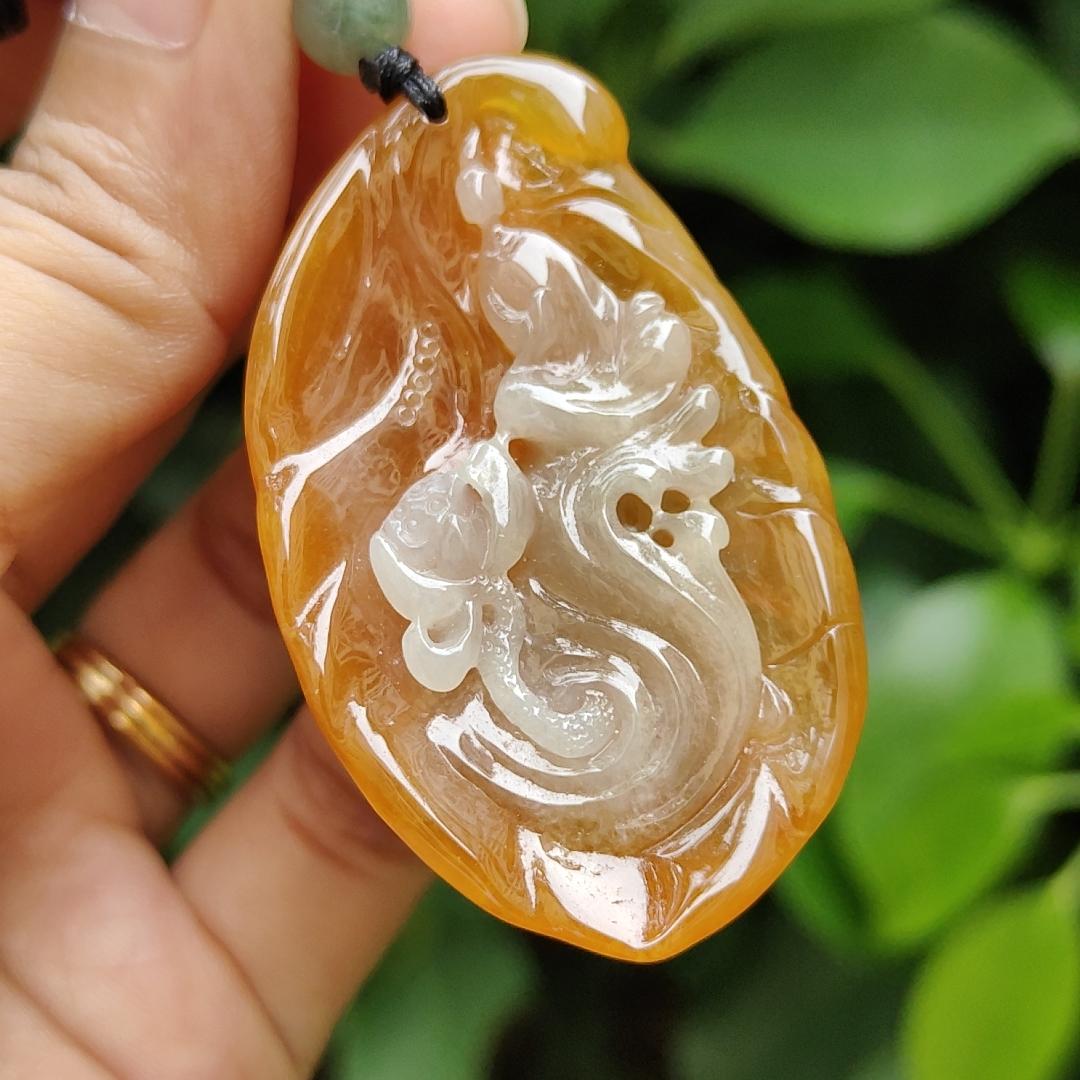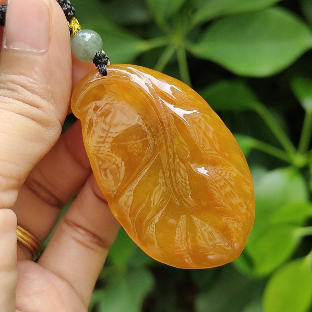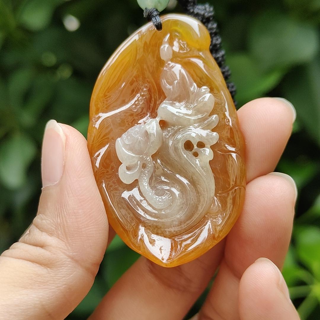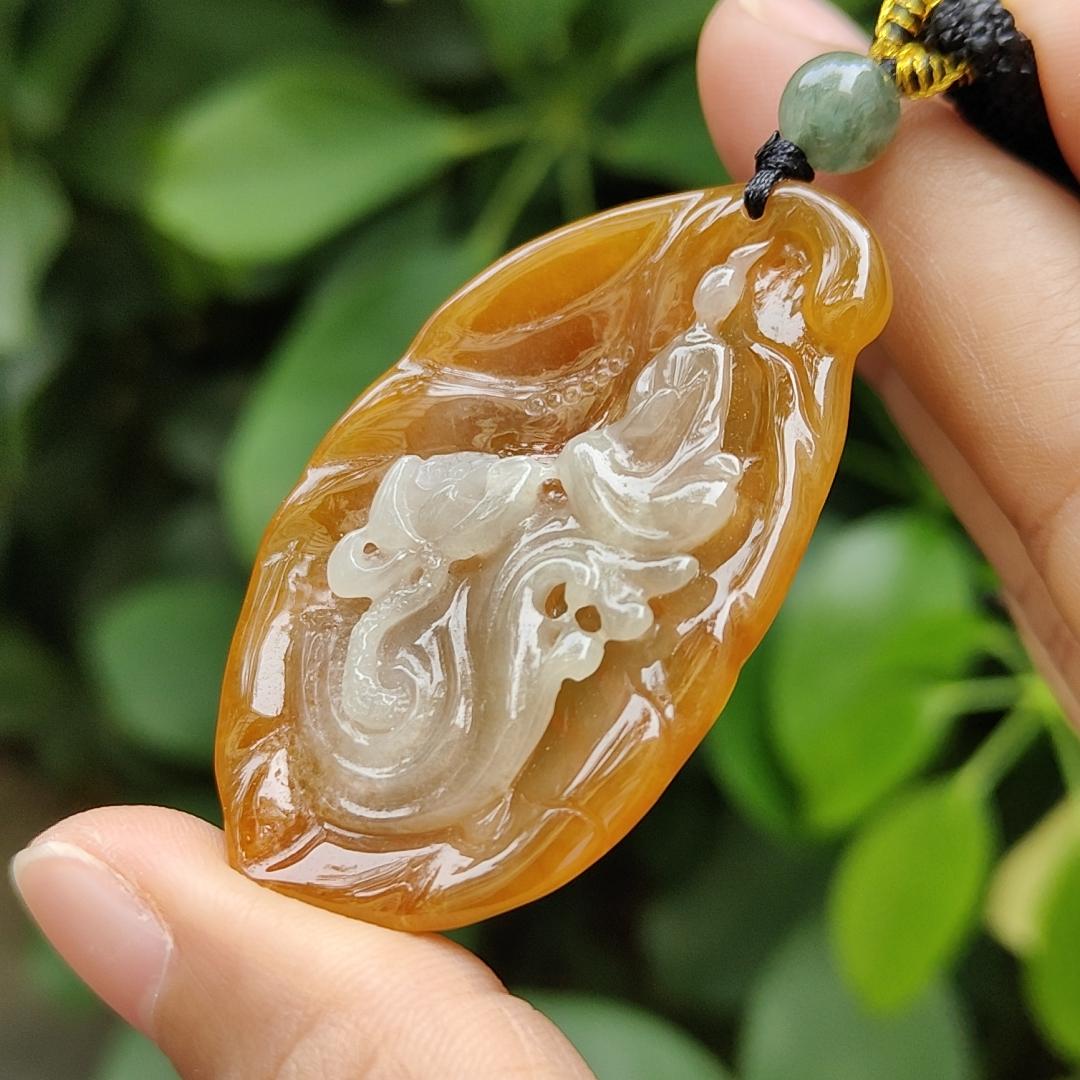 制作成启蒙吊坠罕见优质天然 A 型翡翠玉证书重 15.96 克,尺寸 52.8 * 31.8 * 7 毫米(吊坠 357)