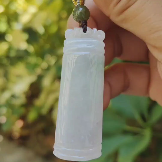 采用“无”符号精心制作,寓意一切都好,天然 A 型翡翠玉吊坠项链,QIC 实验室认可证书重 18.61 克,尺寸 51.7 * 18.5 * 7.1 毫米(吊坠 309)