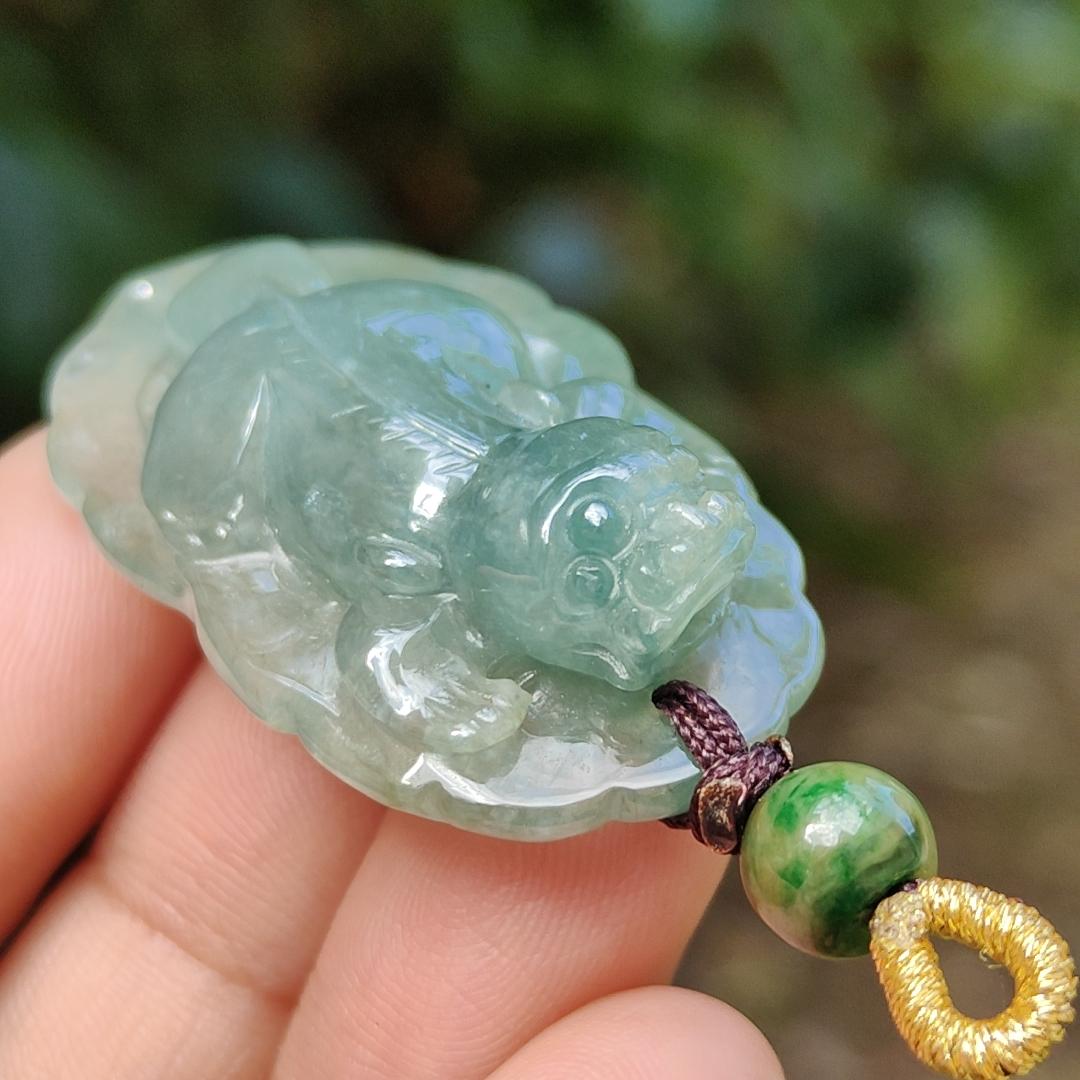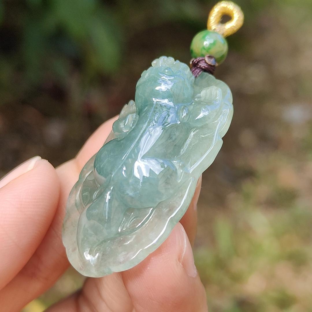 绿色天然 A 款翡翠玉配貔貅吊坠,证书重 12.84 克,尺寸 40 * 23.8 * 10 毫米(吊坠 251)