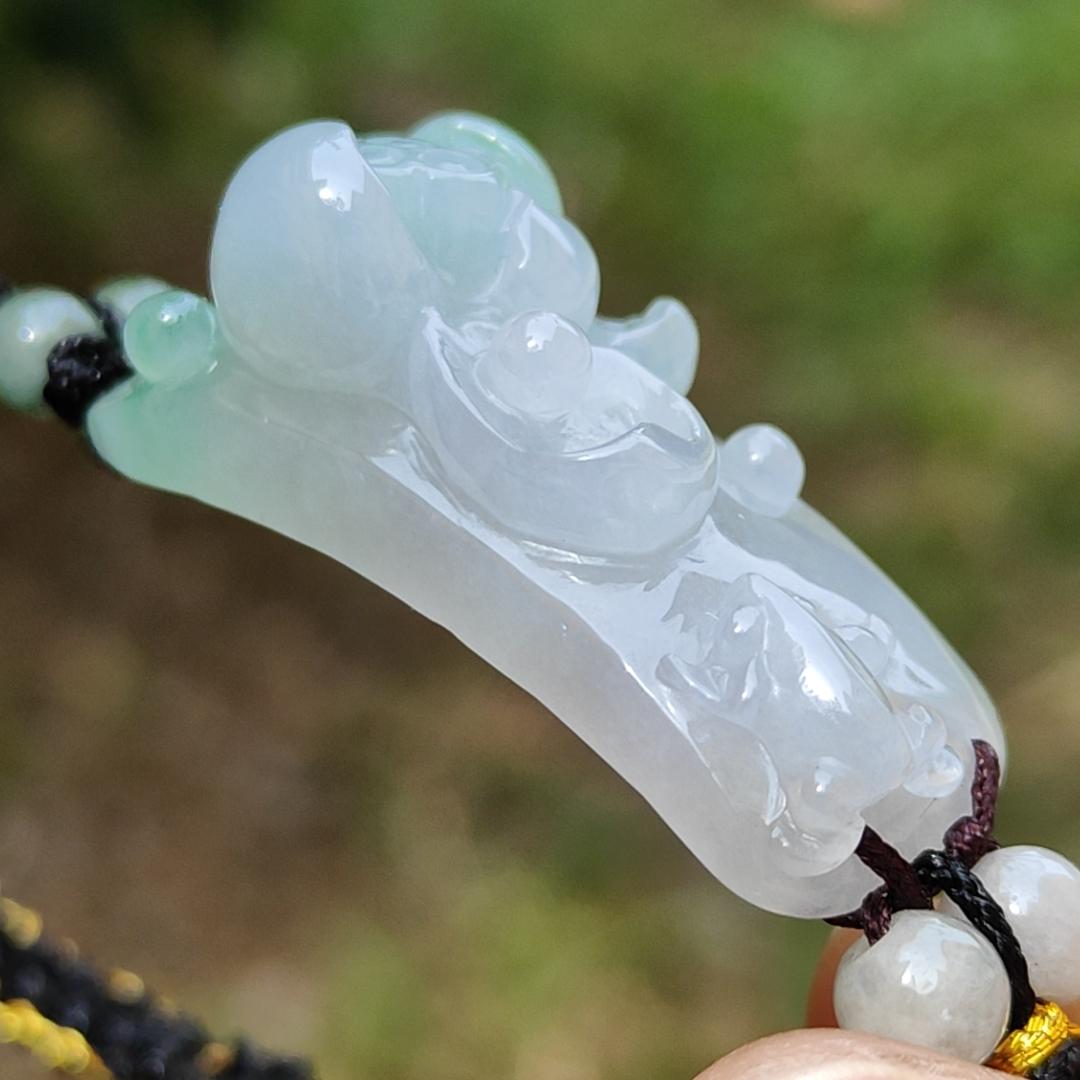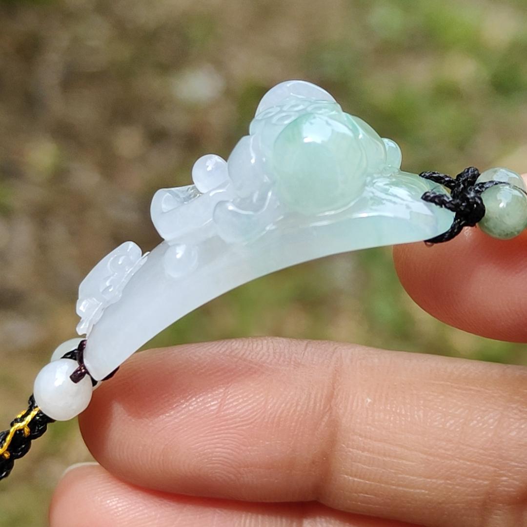 浅绿色天然A货翡翠配青蛙莲花手链,证书重9.98克,尺寸33.9 * 14.1 * 12.3,(手链23)