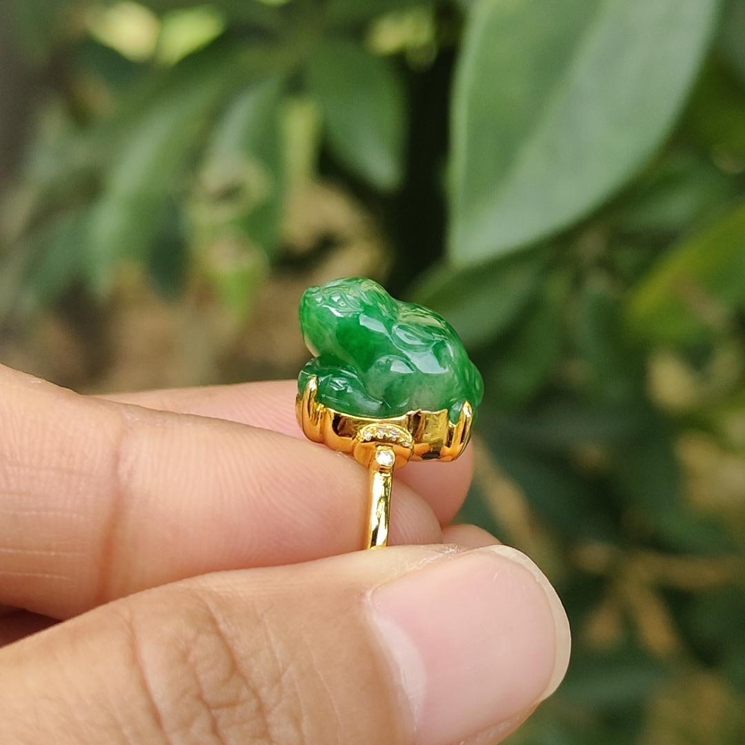 探索精致的三脚蟾蜍绿色天然 A 型翡翠戒指,采用 18k 金精心打造。这件独特的作品既是一份宣言,也是繁荣的象征。