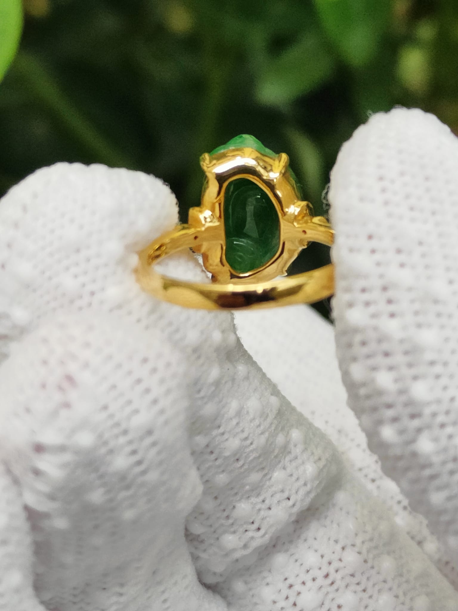 三脚蟾蜍绿天然A货翡翠玉石套装配18k戒指证书重3.78克,尺寸13.6 * 8.7 * 9.6毫米(18kring41)