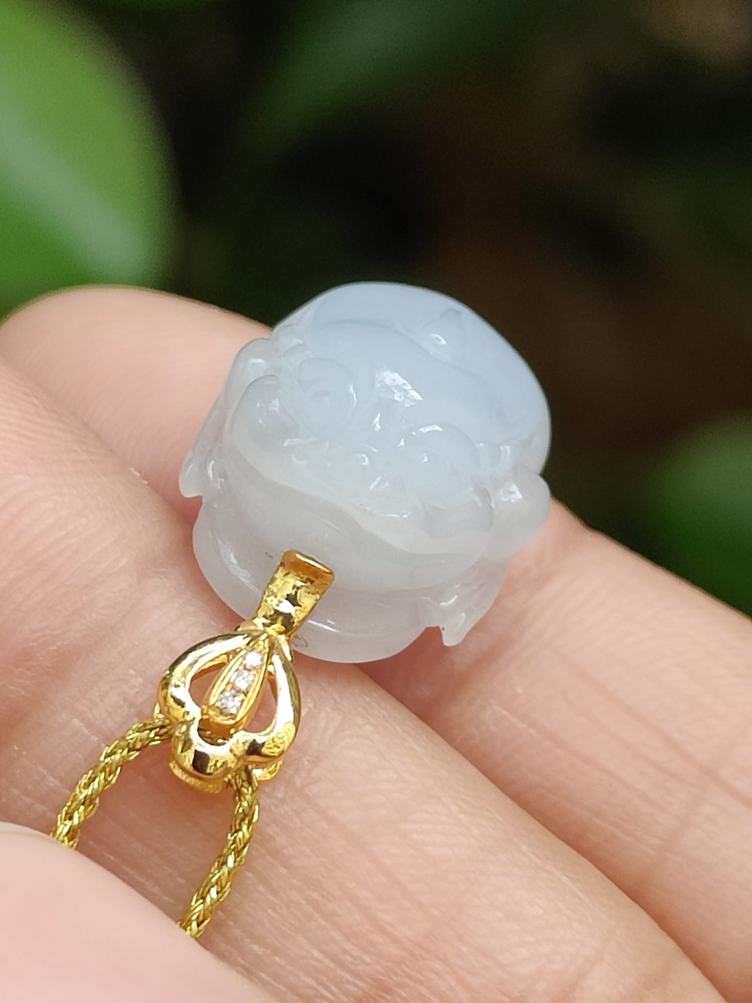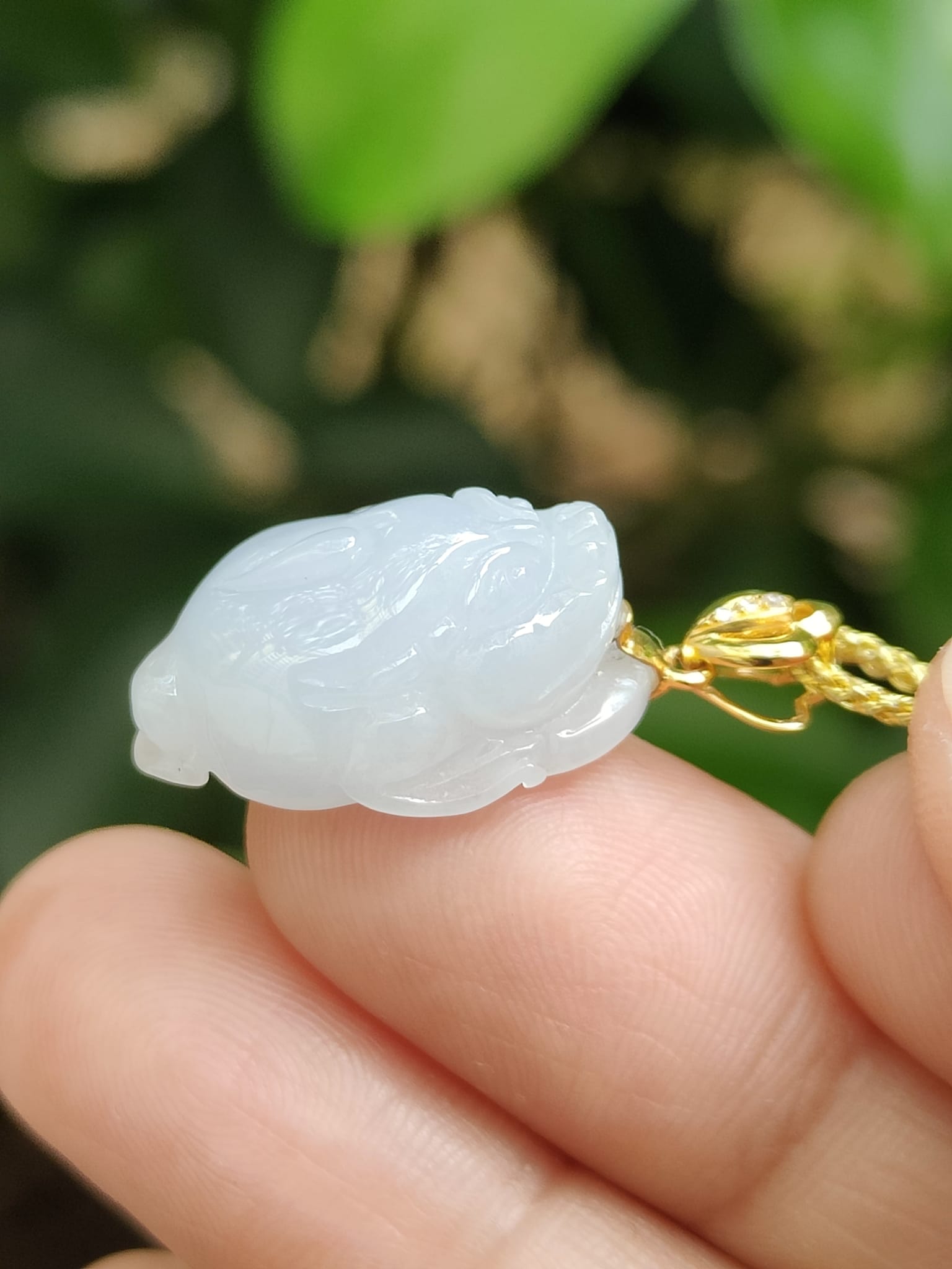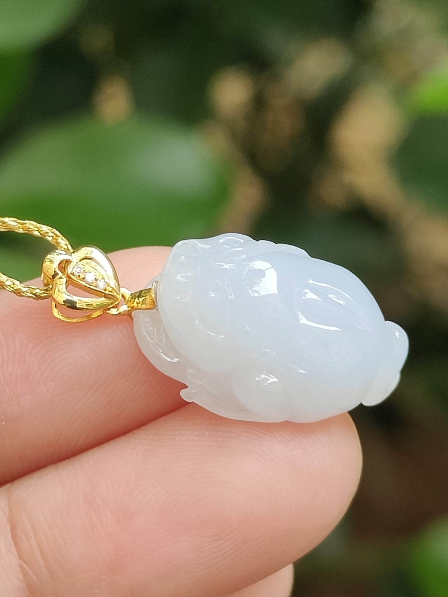 Three Legs Toad Pendant on Light Lavender Natural Type A Jadeite Jade added with 18k clasp certificate weighs 3.76 grams, measurement 19.1 * 13 * 9.1 mm (18kp102)